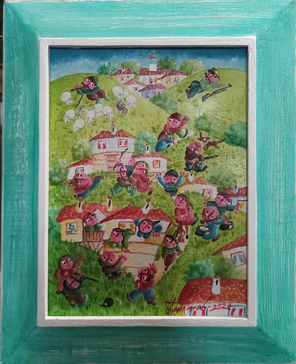 Kiril Bozhkilov (born 1949 in Sandanski) works in the field of satirical drawing, caricature and naive painting. His colorful works exude joy that makes the day seem more cheerful. The artist regularly participates in national and international exhibitions and plein airs dedicated to caricature and painting. His works are in the collection of the largest House of Humor and Satire in Gabrovo and in a number of private galleries in Denmark, Italy, the Netherlands, Norway, England, France, Germany, the USA, Korea. His colorful works adorn the Embassies of Denmark, Sweden and Norway in Bulgaria, the National Palace of Culture, the Council of Ministers, the Ministry of Foreign Affairs. The artist regularly participates in the exhibition-competition “Umuri Shimbun” – Tokyo, as well as in plein airs. He has had a number of solo exhibitions in Bulgaria – in Sofia, Plovdiv, Varna, Blagoevgrad and one in Poland. Winner of a number of awards: 1986, Pernik, Second Prize for Caricature; 2000, Sofia, First Prize for Painting and Satire; 2001, Istanbul, Turkey, First Prize; 2003, Strumica, Macedonia.