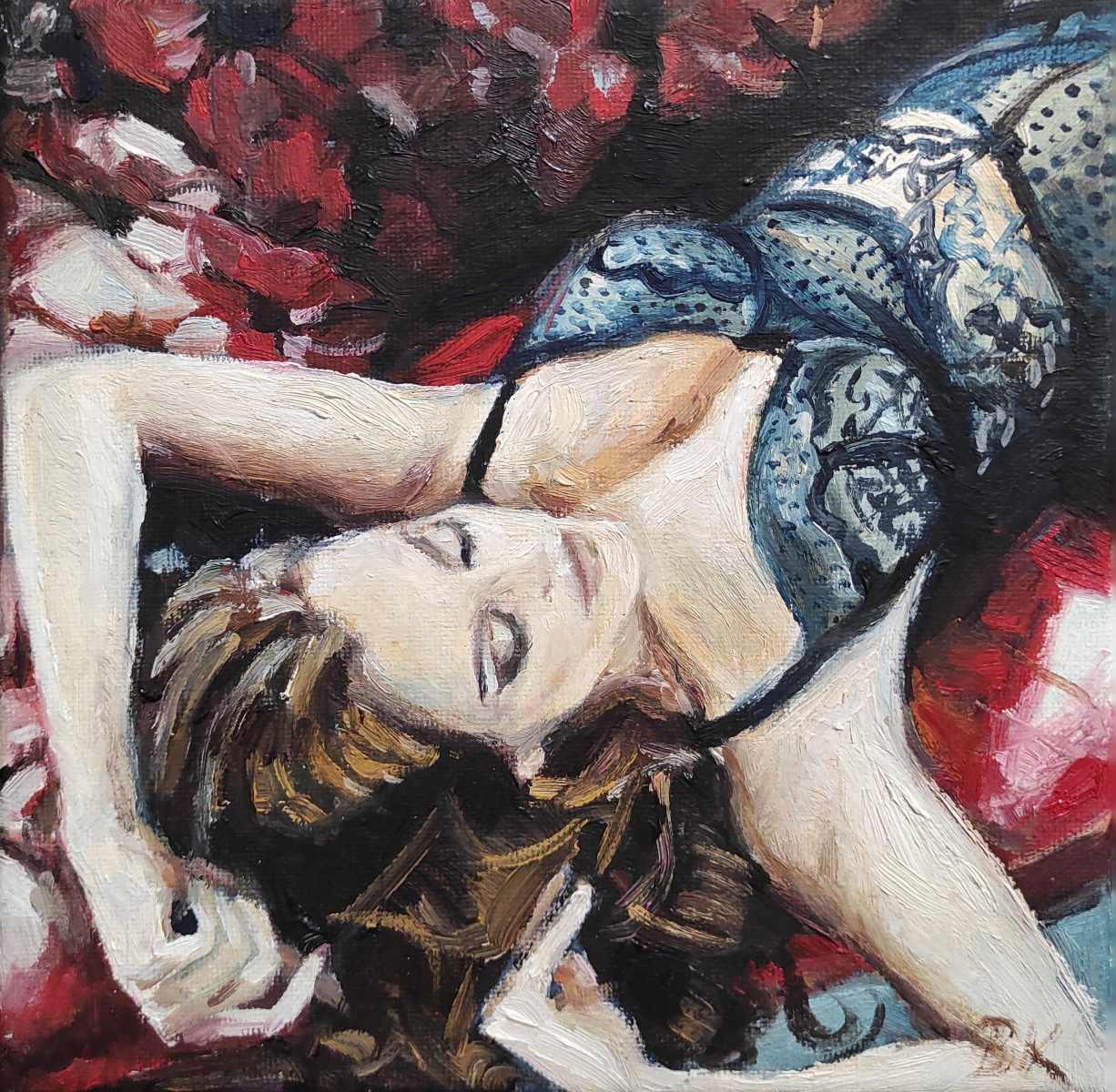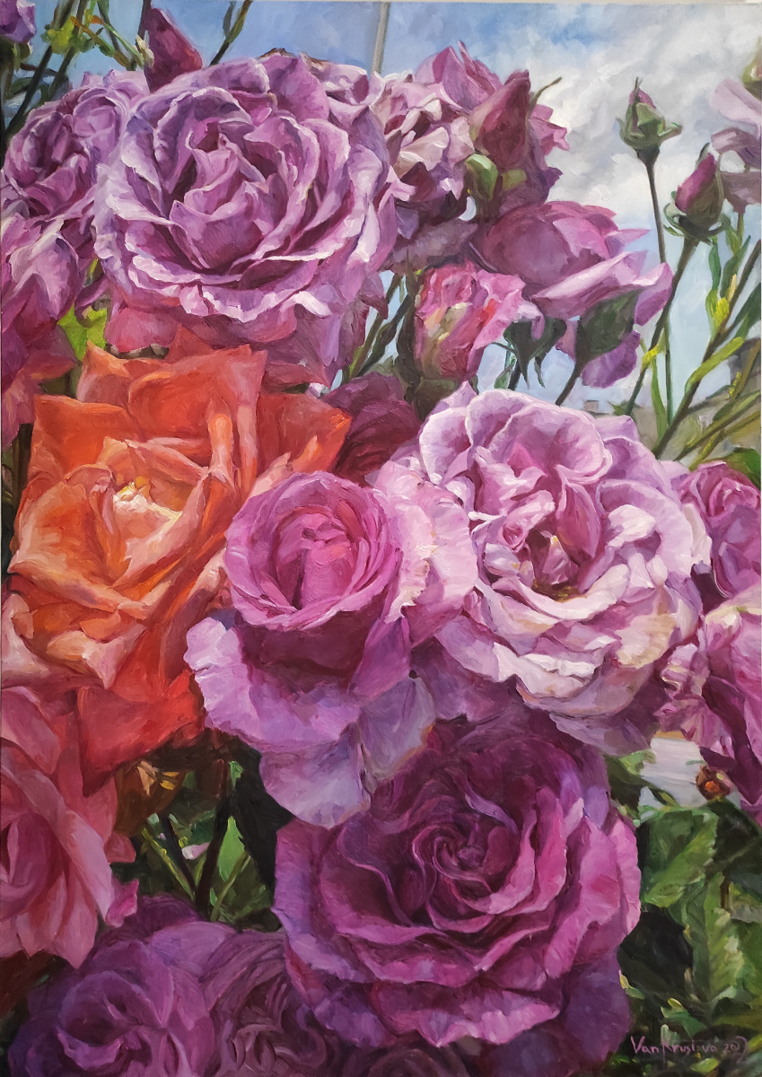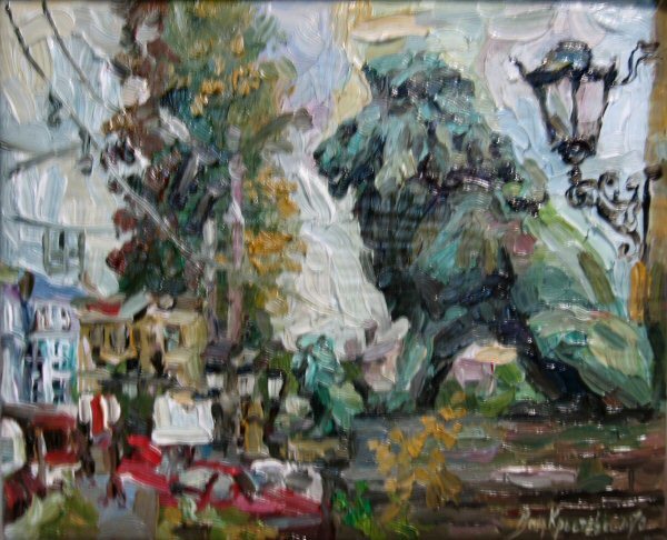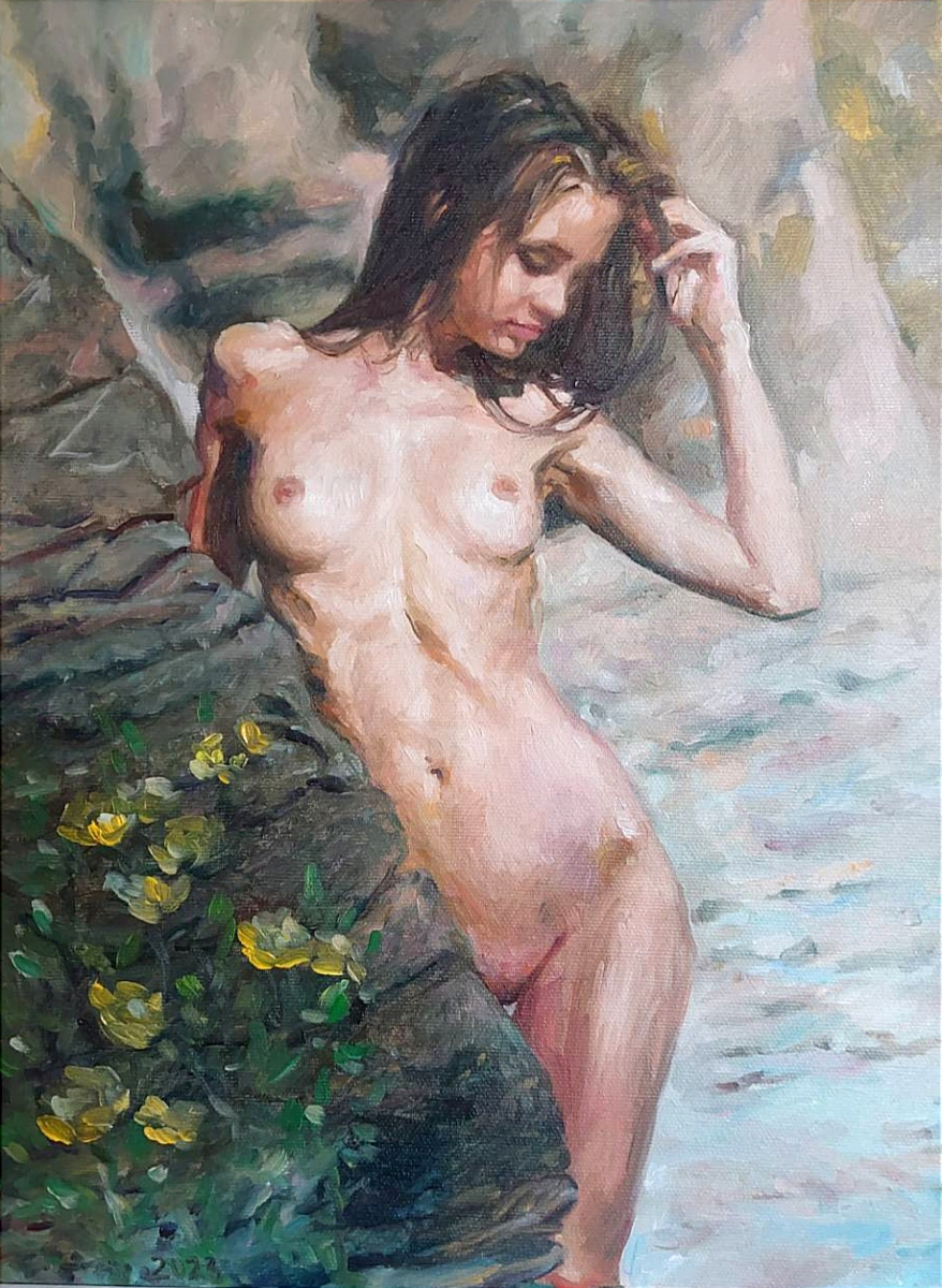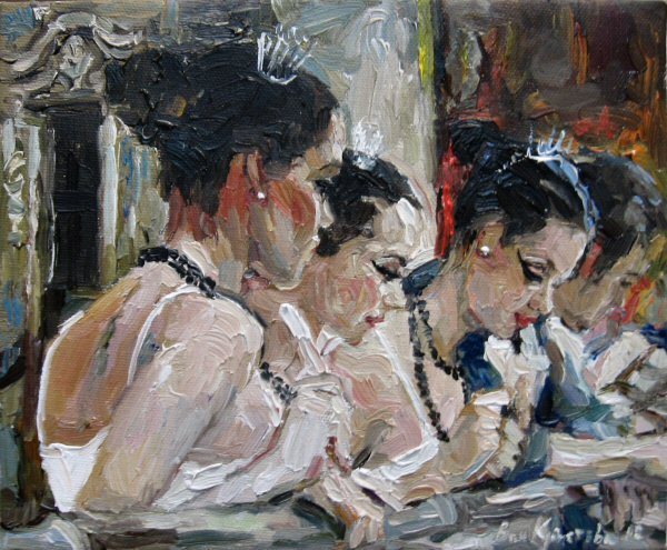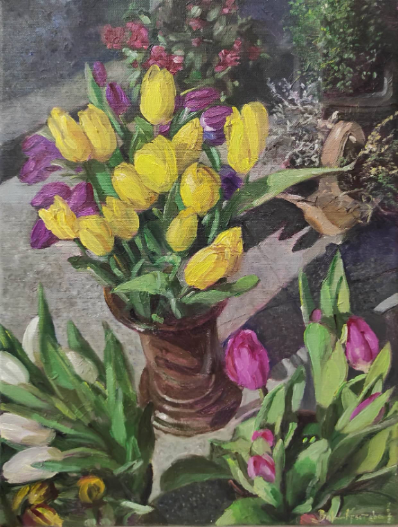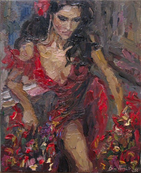 Born in 1980 in Gorna Oryahovitsa. In 2004 she graduated from the St. Cyril and Methodius University of Fine Arts, majoring in Painting, with a Bachelor's degree. In 2006 she graduated from the National Academy of Arts, majoring in Painting, in the studio of Academician Svetlin Rusev under the guidance of Prof. Ivaylo Mirchev and Prof. Desislava Mincheva. EXHIBITIONS: 1997 – general exhibition at the “Sirakov” Gallery, Veliko Tarnovo 1998-1999 – general exhibition at the “Specter” Gallery, Gorna Oryahovitsa 2001-2003 – general exhibitions in Veliko Tarnovo and Arbanassi 2005 – plein air “The World is the Sea”, Pomorie general exhibitions at the “Alterego” Gallery and the “Astri” Gallery in Sofia 2006 – plein airs in Lovech and Pomorie National Competition for Young Artists and Critics of the Ministry of Fine Arts “St. St. Cyril and Methodius”, “Shipka 6″ Gallery, Sofia 2007 – plein airs in Razlog, Lovech, Ahtopol solo exhibition at the “Alterego” Gallery, Sofia 2009 – One-wall exhibition at the “Noah” Gallery, Sofia AWARDS: 2004 – certificate for excellent performance in the educational process at the “St. St. Cyril and Methodius”, Veliko Tarnovo 2005 – First prize in the National Competition for Young Artists and Critics of the MF “St. St. Cyril and Methodius”, Sofia 2006 – award from the National Academy of Arts – specialization at Cite International des Arts in Paris, France Her works are owned by private collections in the country and abroad: USA, Czech Republic, England, Turkey, etc.